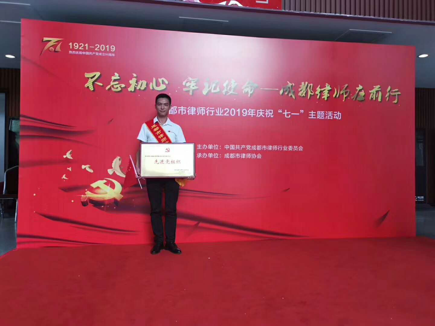 随后,市司法局党组成员、政治部主任张勇为作出贡献的“优秀党组织”“优秀共产党员”“优秀党务工作者”代表进行颁奖。中共四川蜀航律师事务所党支部评选为成都市律师行业“先进党组织”。