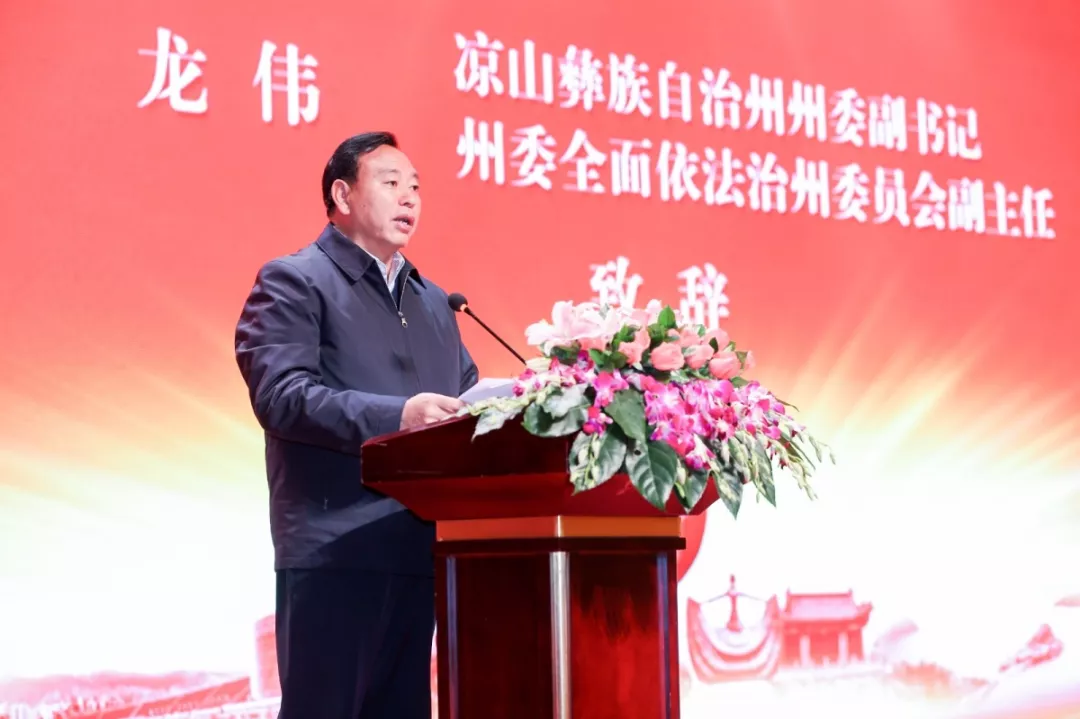 凉山彝族自治州州委副书记、州委全面依法治州委员会副主任 龙伟致辞