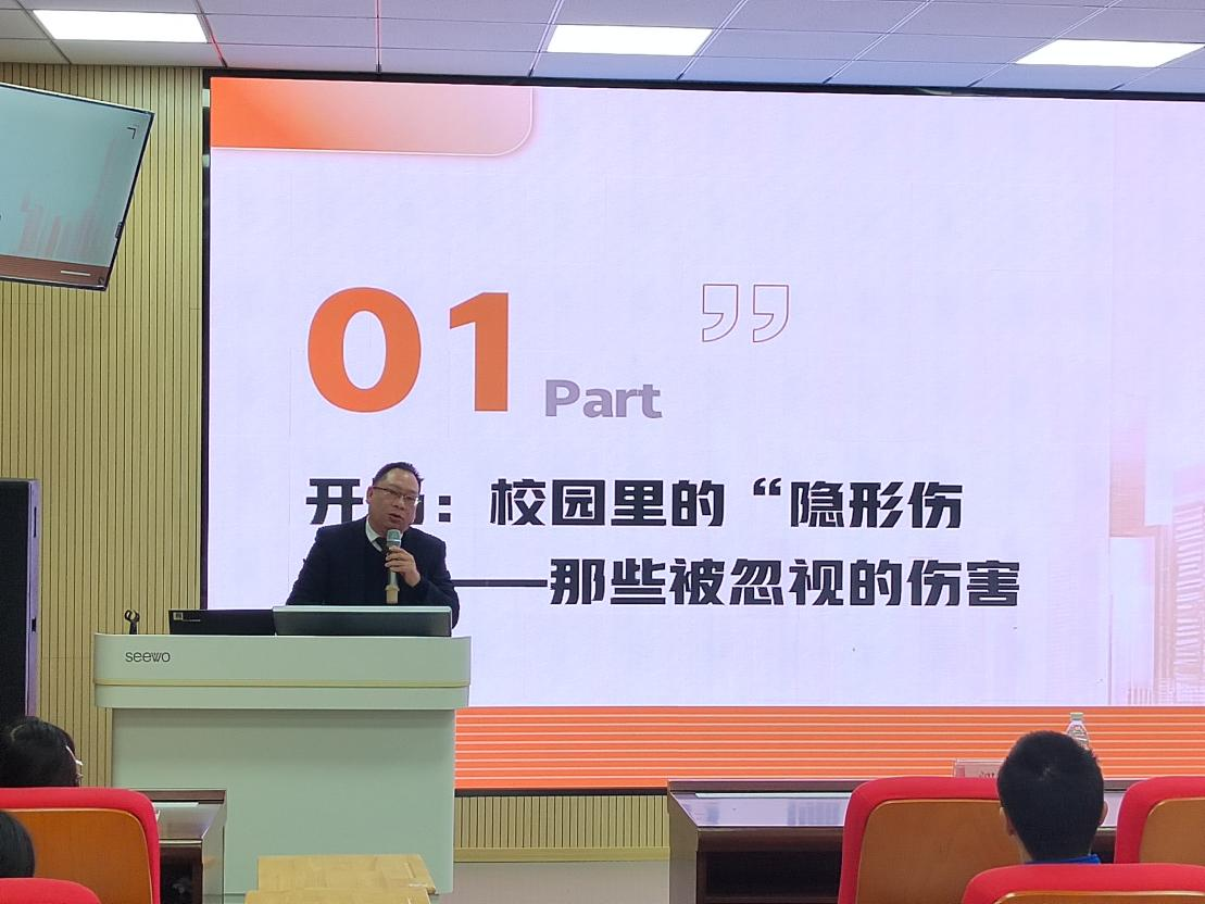 讲座中,郭文彬律师围绕校园霸凌与性侵的现状、法律定义、典型案例及应对措施等方面展开讲解,结合2025年新修订的《治安管理处罚法》,系统阐述了校园霸凌的三种常见类型(肢体、语言、网络霸凌)以及性侵行为的法律界定与处罚标准。通过真实案例剖析,郭律师生动说明了霸凌与性侵行为对青少年身心健康的严重影响,并强调了学校、家庭、社会在预防与干预中的责任。